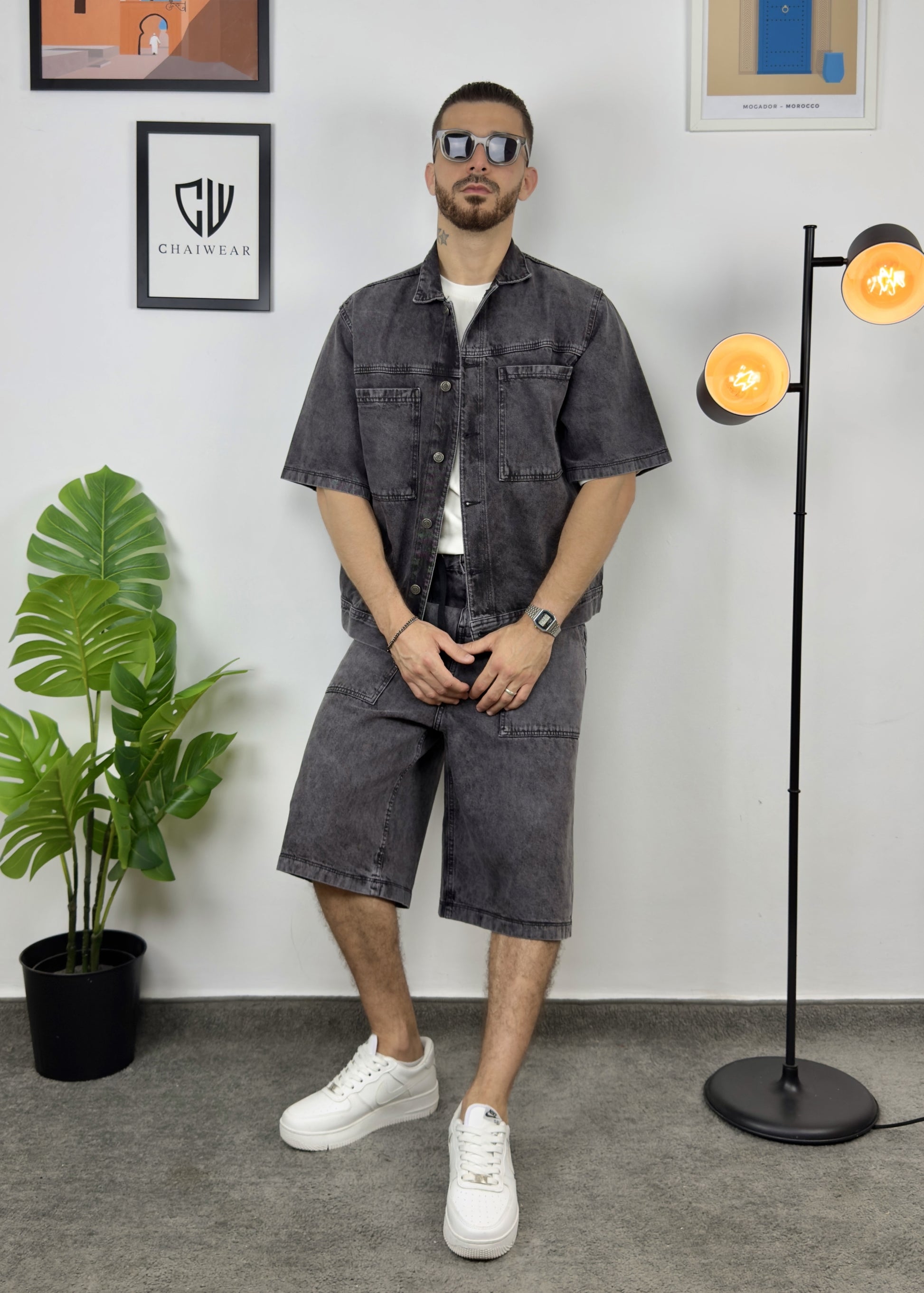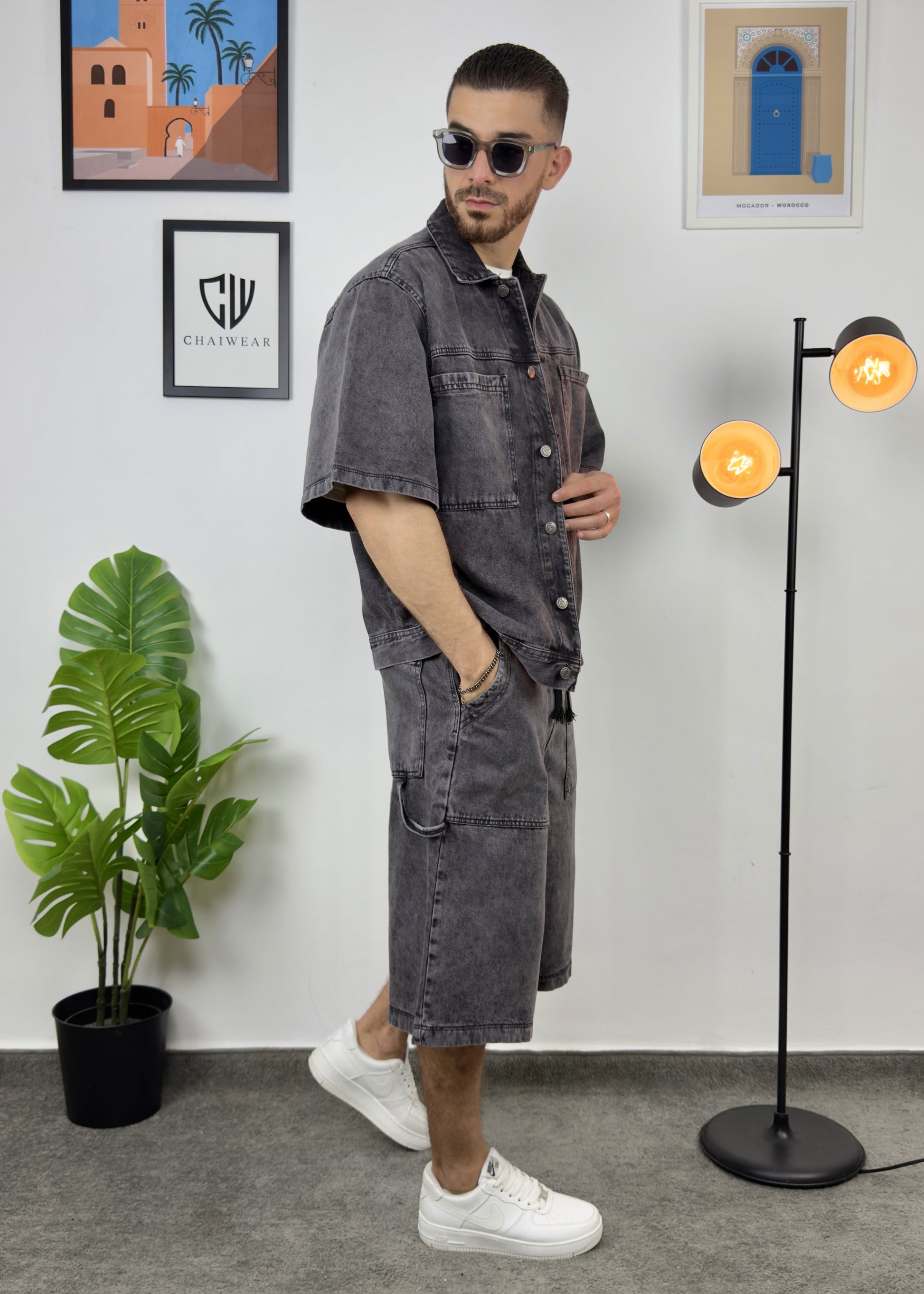 Short et Veste en Jeans oversize en coton lourd 12 Oz